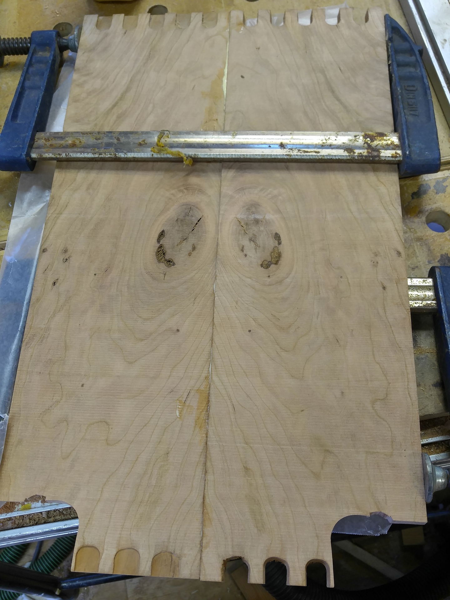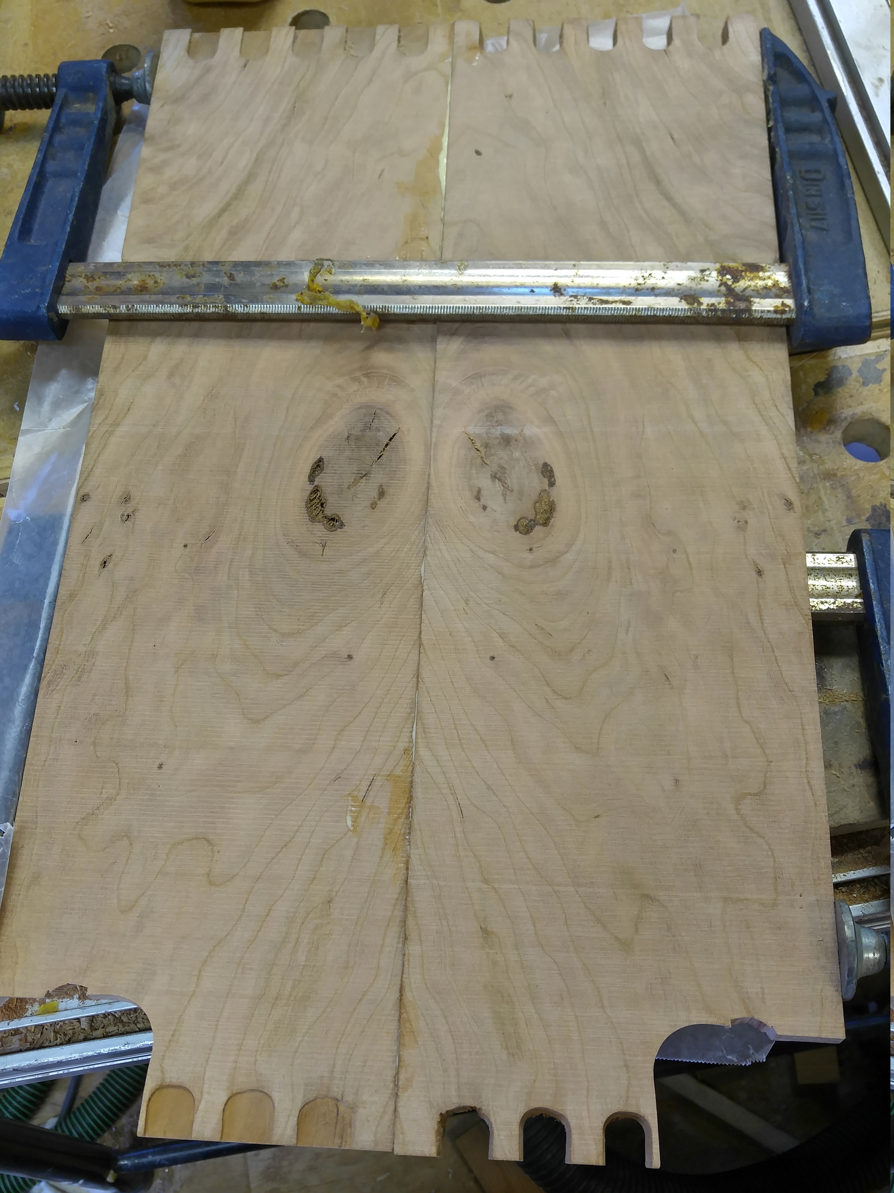 Gluing up a panel for the bathroom vanity door