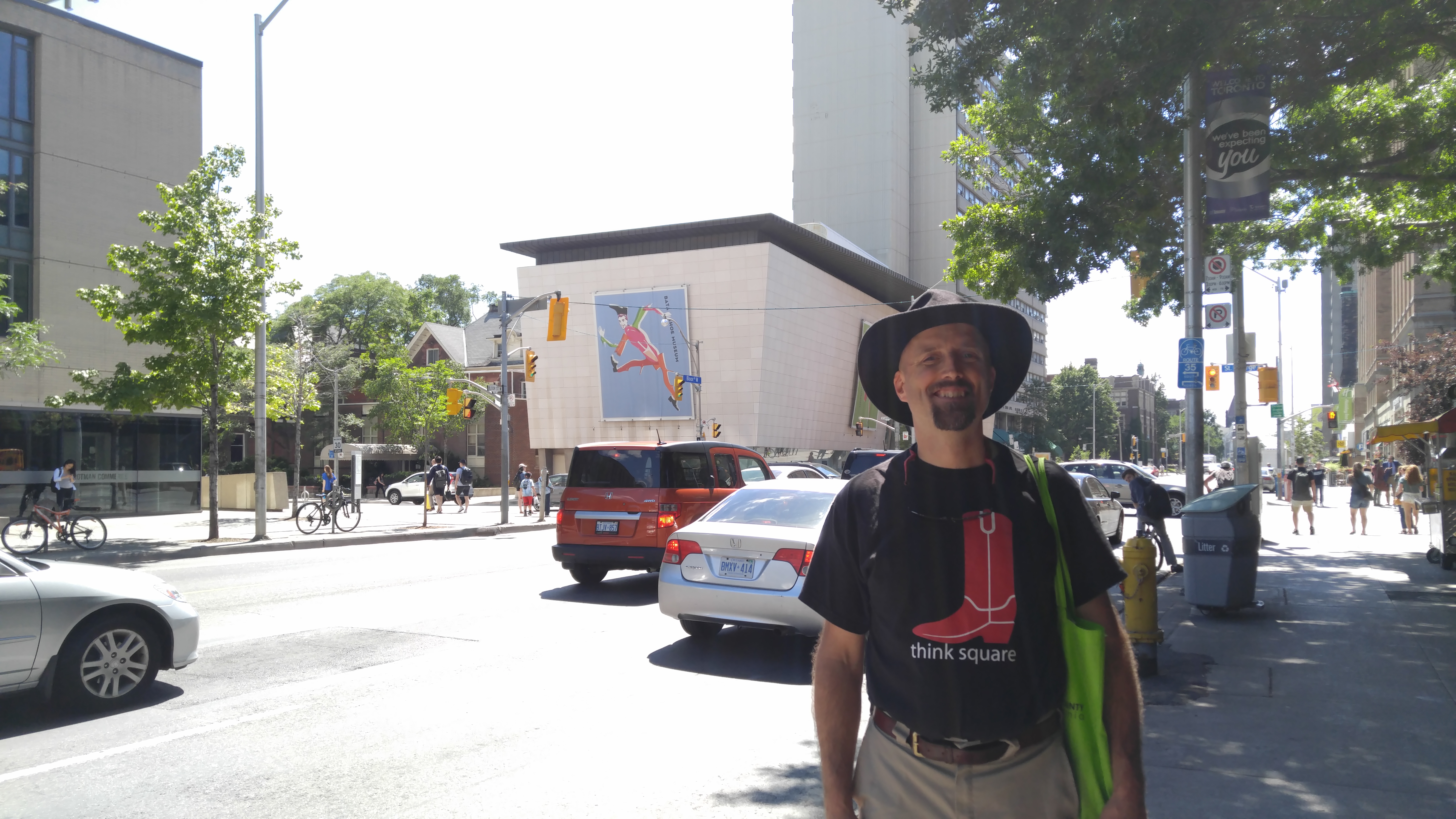 Outside the Bata shoe museum, where we saw the "Curious History of Men's High Heeled Shoes" exhibit