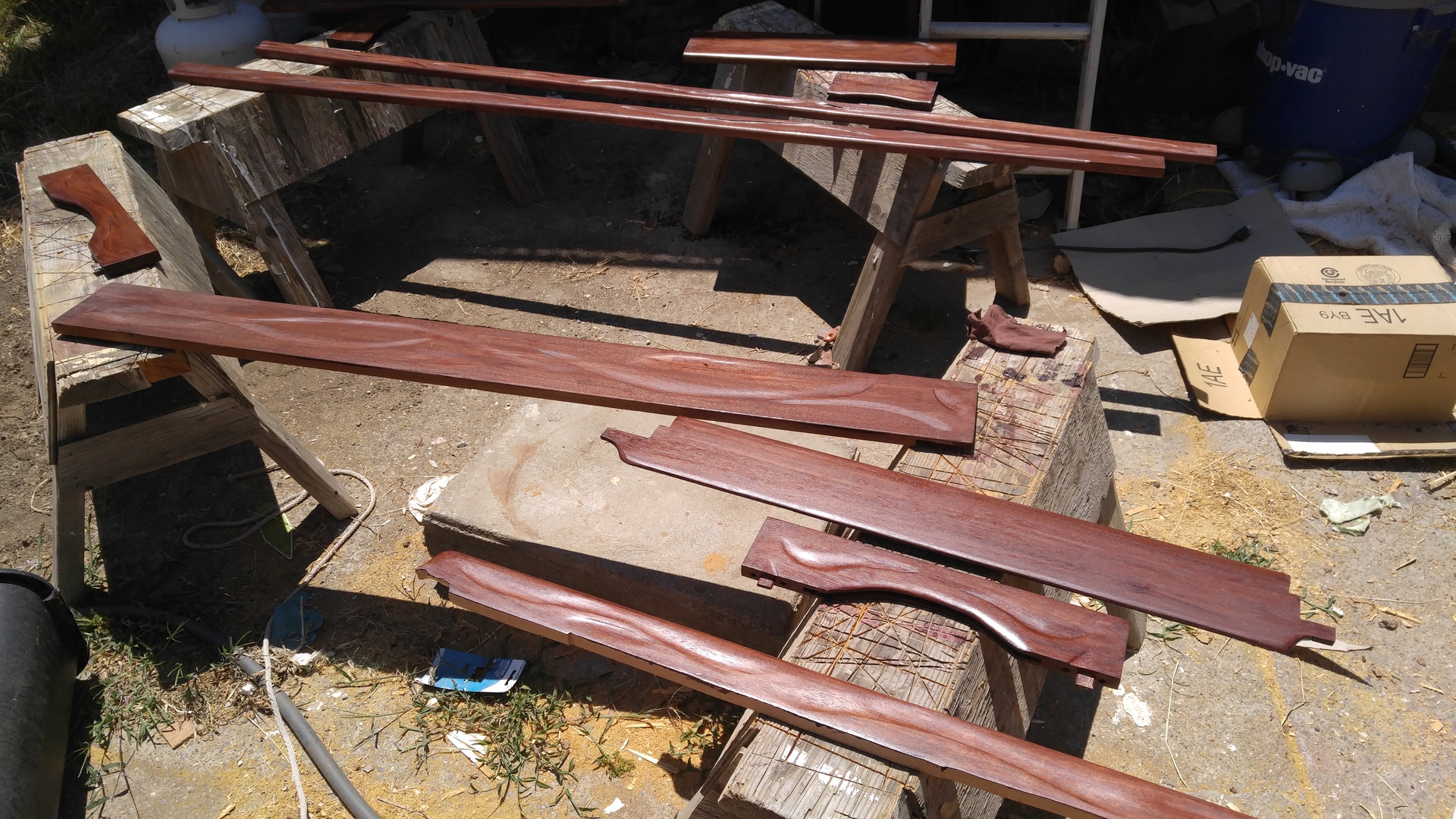 Drying stain on the bathroom trim, to be followed by mumble coats of marine varnish...