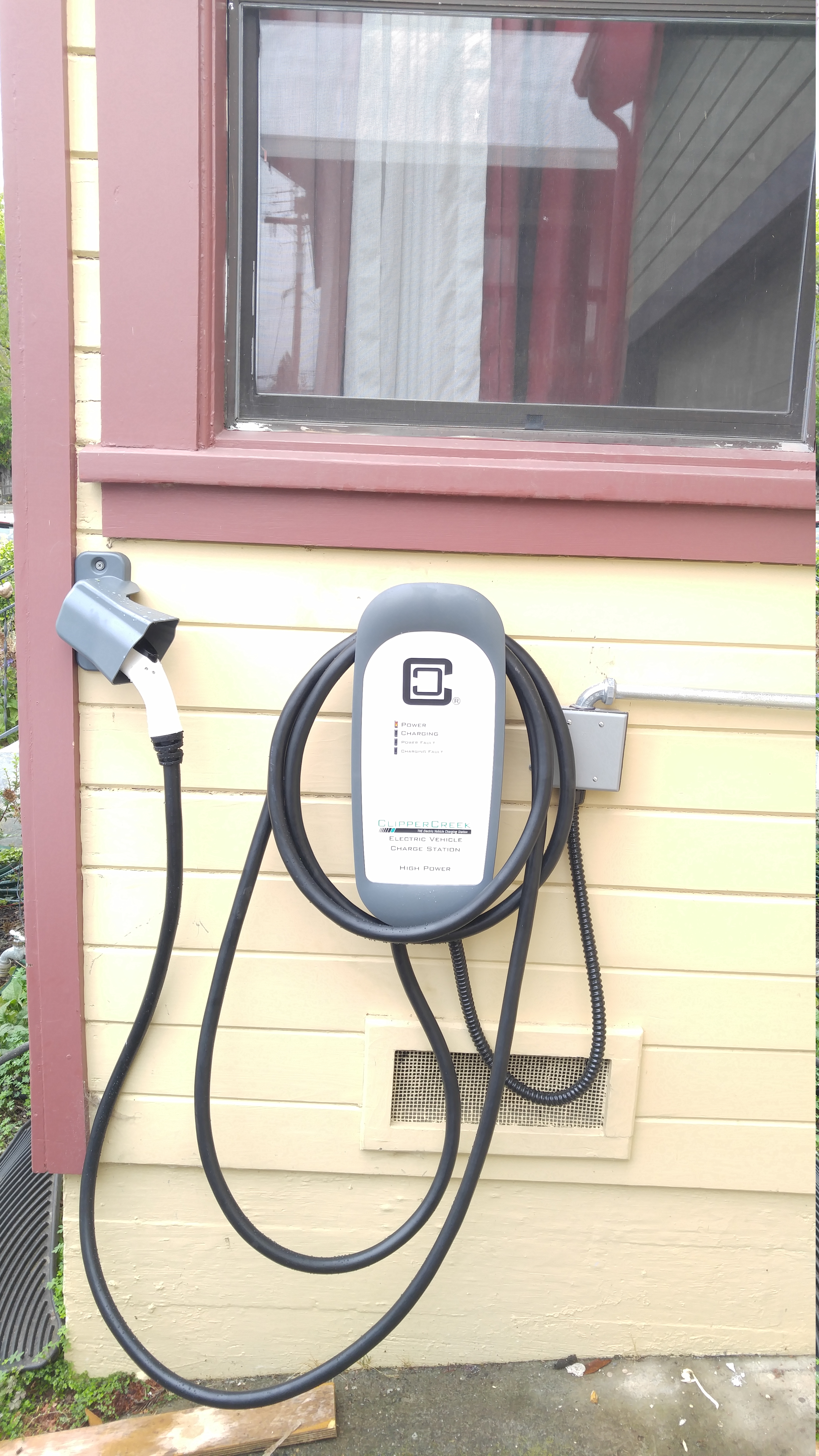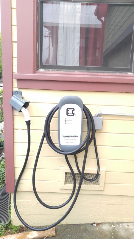 The installed ClipperCreek HCS-50 charging station (EVSE)