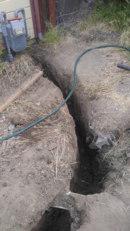 Last 8' o of trench took about an hour a foot, early morning trying to avoid the heat.