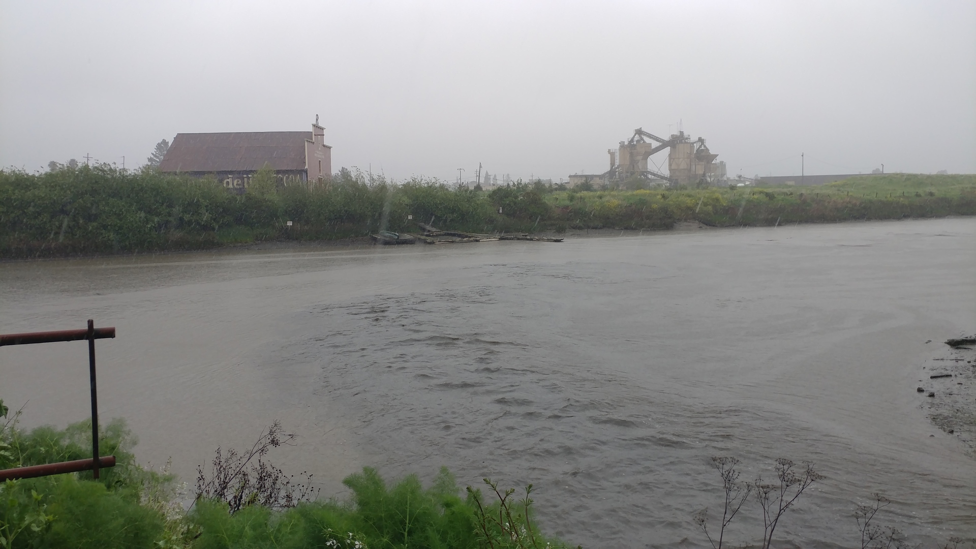 Low tide, but the normally tidal Petaluma river is really flowing in this storm!