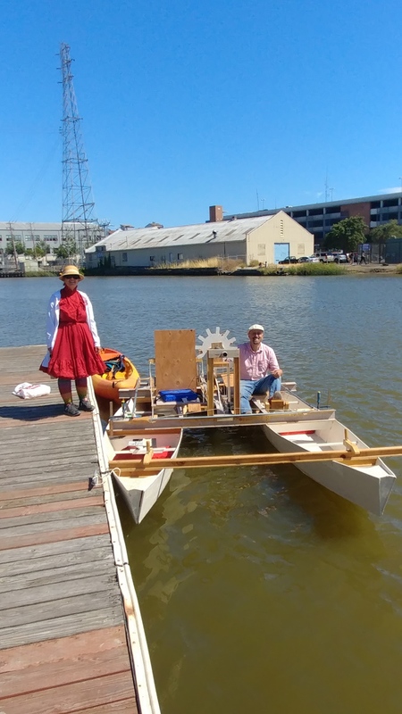 The boat did not work well: too much slip in the rope drive, the paddles were too deep in the water.