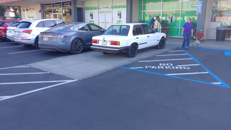 Isuppose that strictly speaking the "no parking" signage doesn't actually extend on to the sidewalk...