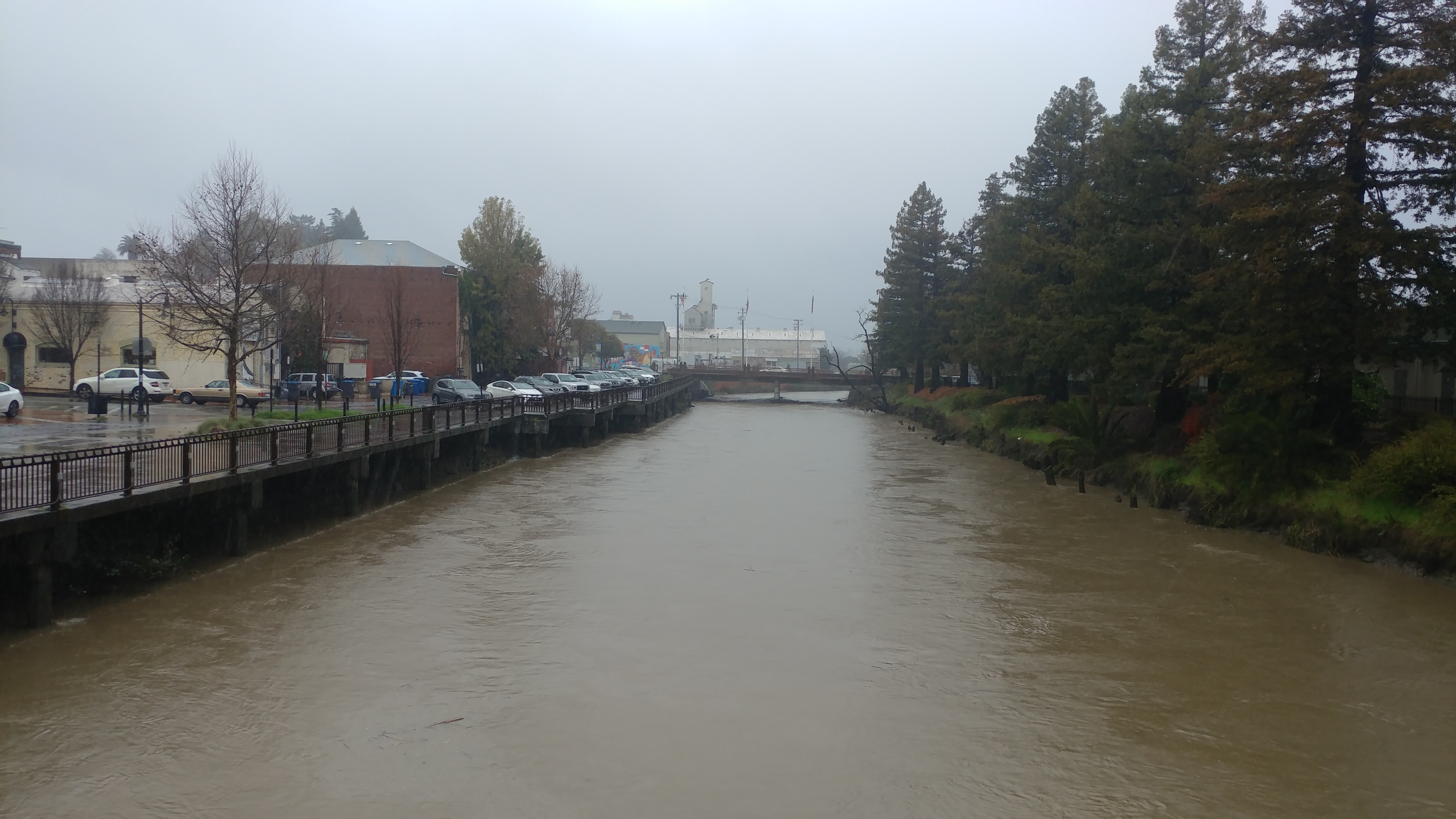 Hard to capture just how much flow there is right now on the normally tidal Petaluma River