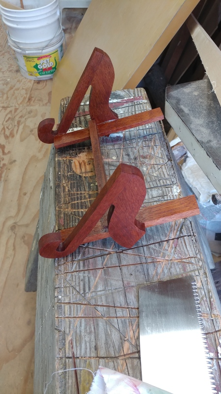 Among today's projects (along with a ton or so of concrete out of the back yard as we evolve landscaping plans), finishing this little piece to hold a tablet music player on top of our stereo