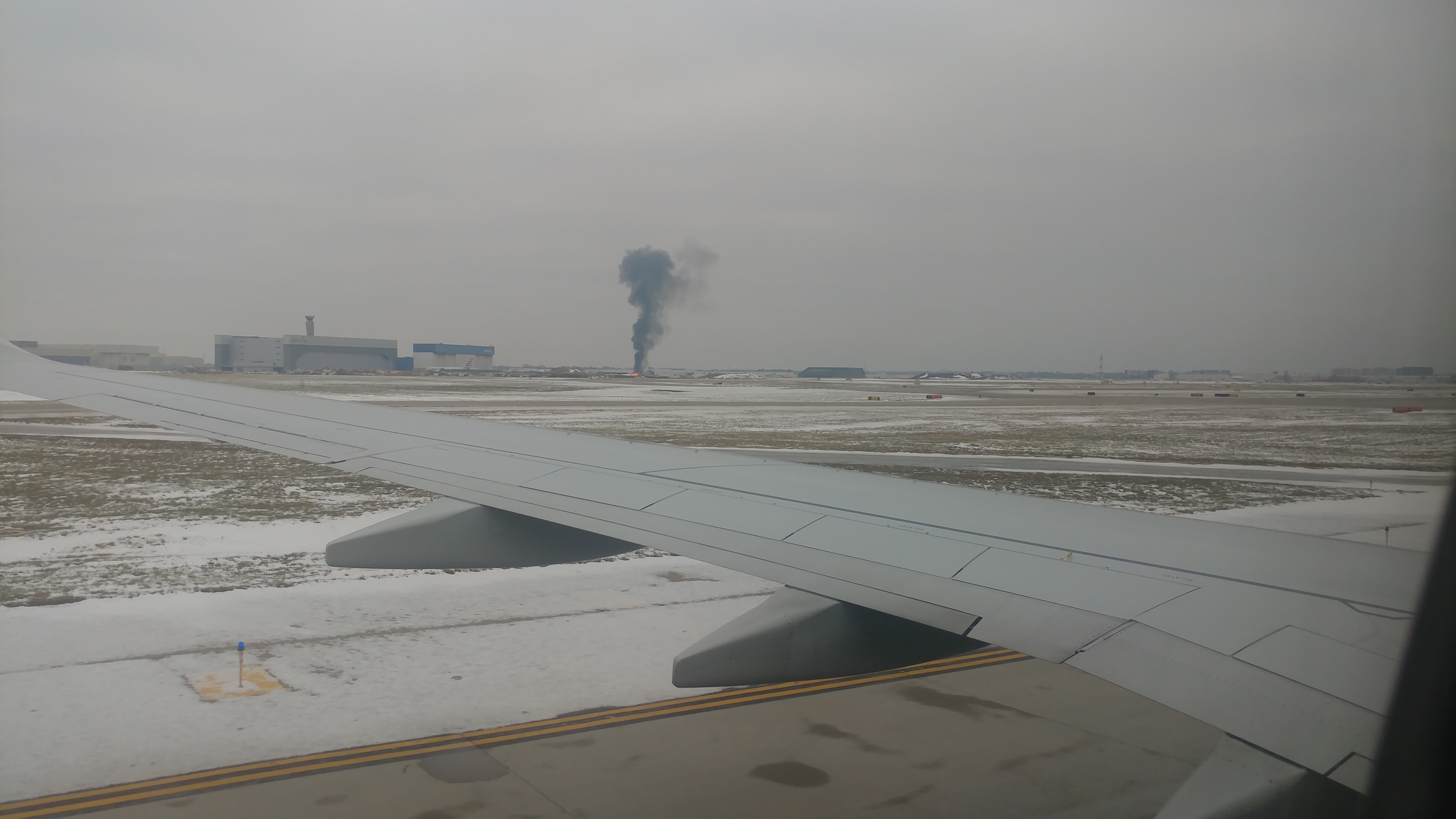 On the ground in Chicago. Don't expect to see a fire like that during the interminable O'Hare taxi...