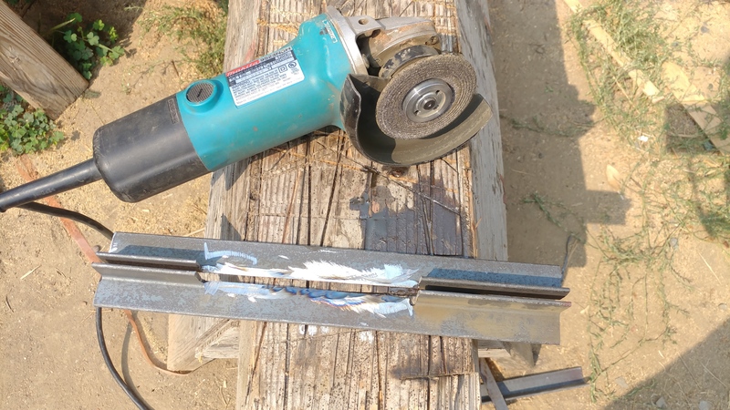 Grinding brackets to hang the lower shelf in the retracting bookshelf/headboard.