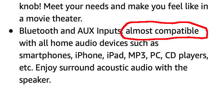Also impressive in truth in advertising is the suggestion that this amplifier is "almost compatible"!