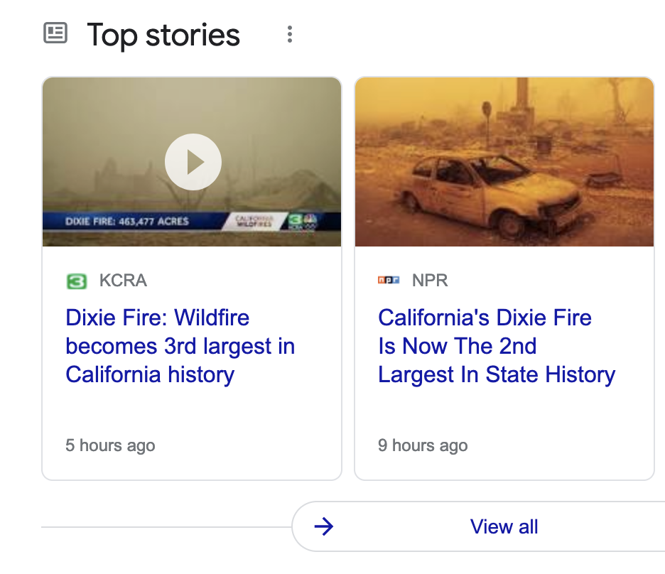 I clicked through, turns out Google News is using stale headlines or something, because both stories say the Dixie Fire is now the second largest (behind the August Complex Fire) in California history.