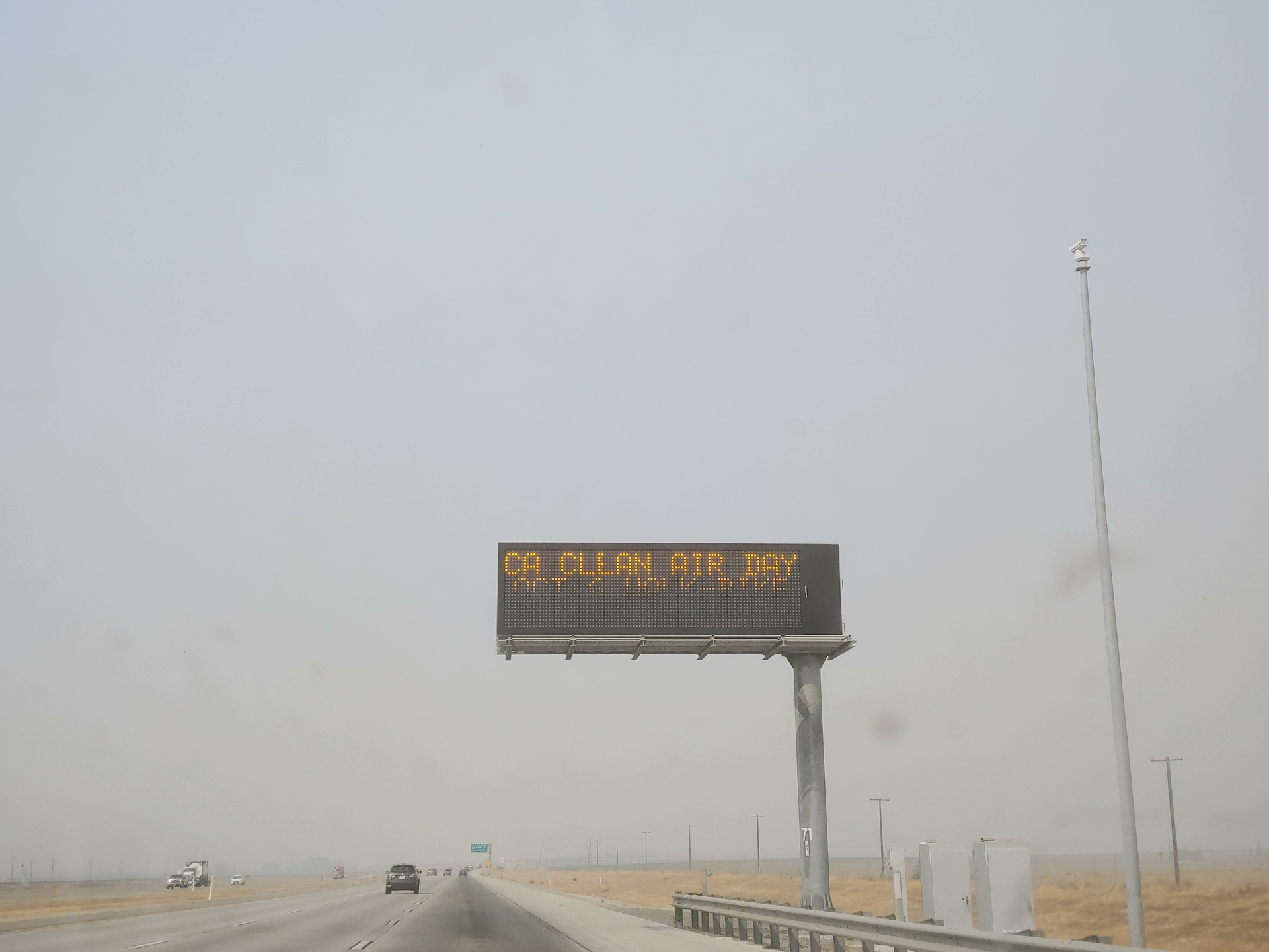 Hey, it's great that we've dedicated a day to this, and are advertising bike and walk to work day on a 3 lane highway in the middle of the Central Valley, in a daft when visibility is probably a mile or so...