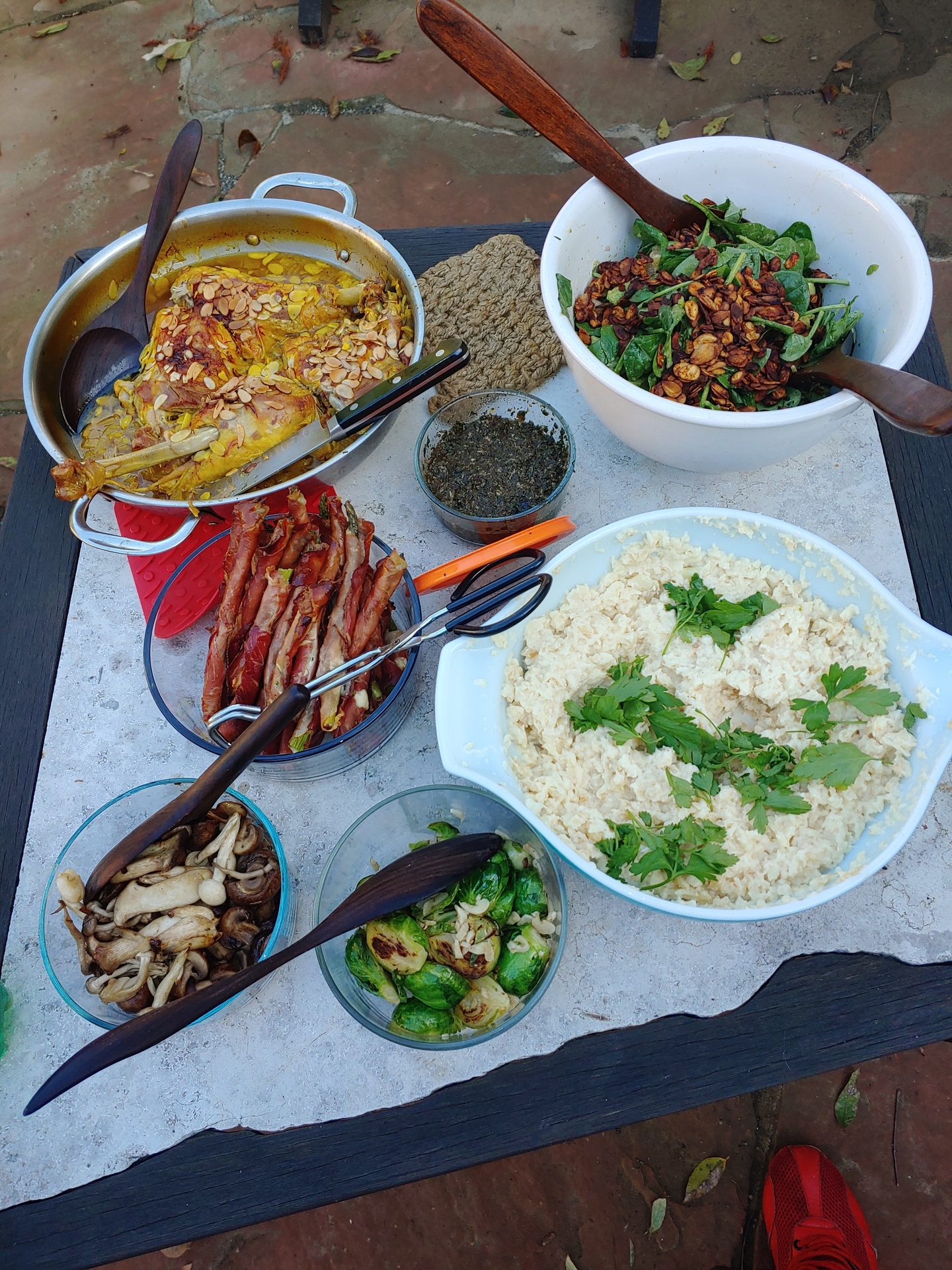 Obligatory foods post. Prosciutto wrapped asparagus, mashed celeriac, flatbreads made from nut flours (our guest is diabetic) saffron turkey, etc.