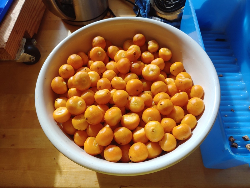 Bunch of Pindo palm fruit that needs to ripen for a bit before we de-pit it, but the freezer is filling up. This year's Pindo wine is gonna be fruit heavy...