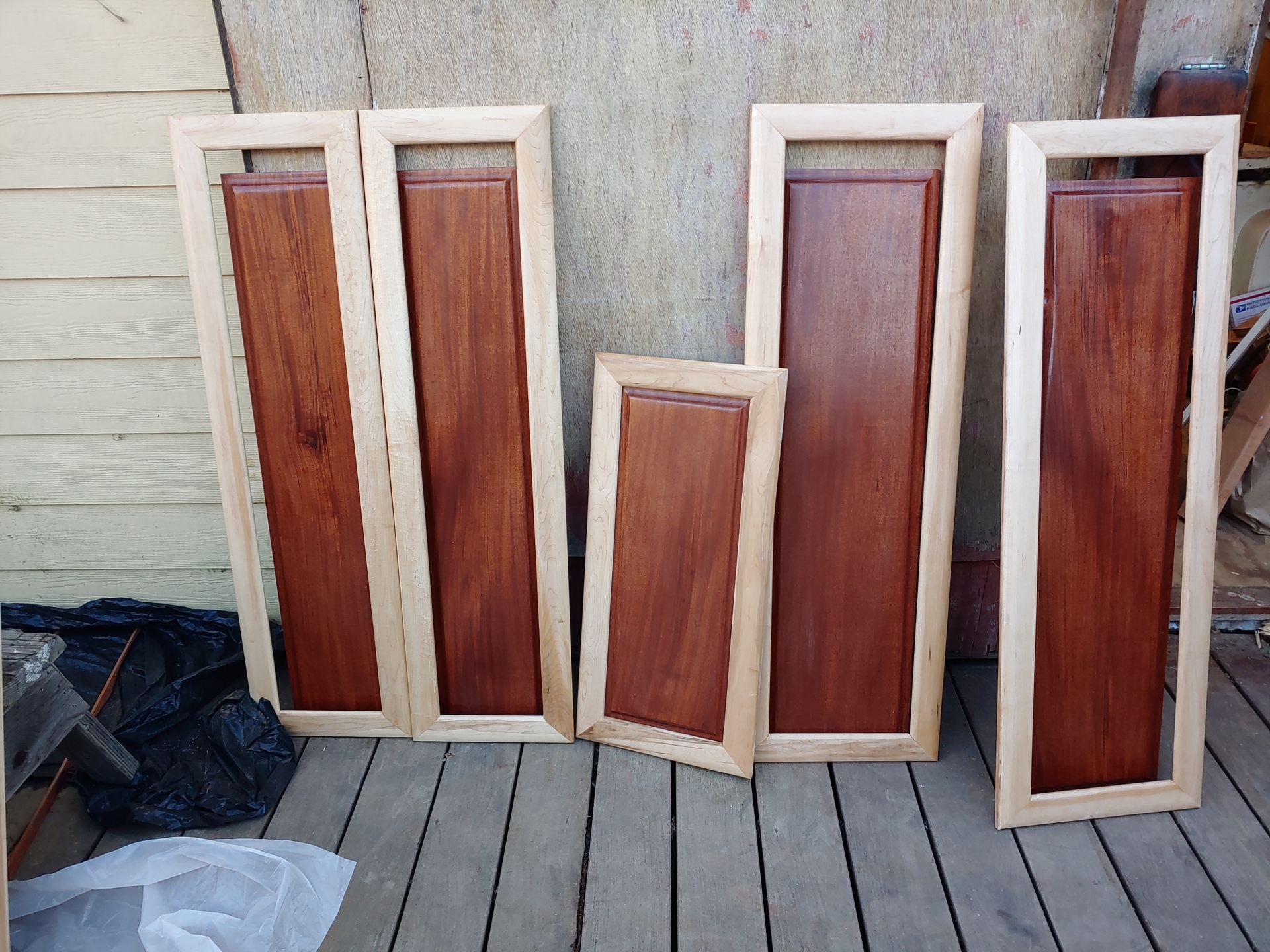 For the last coat I hand sanded so that I didn't go too deep. 25 doors. My arms are physically tired, but I've milled all the retaining strips too and am getting close....