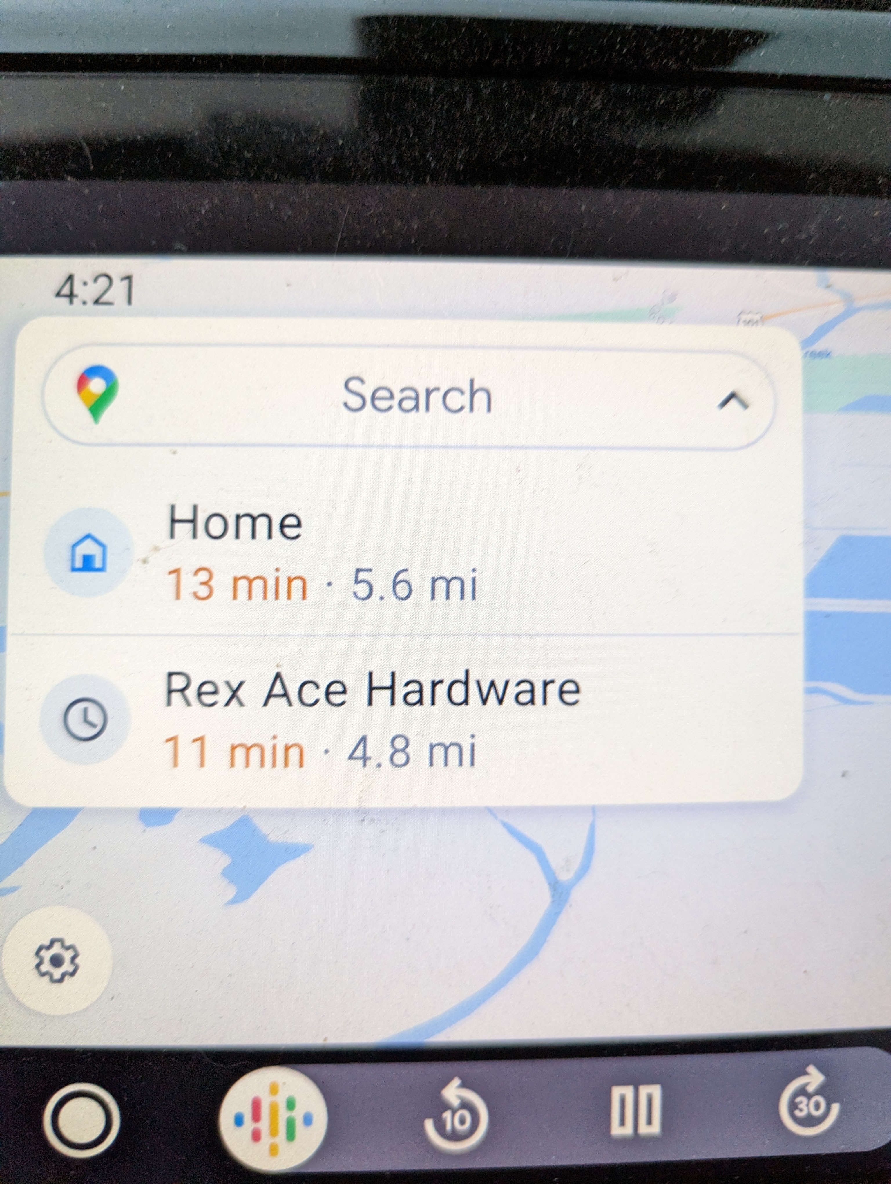 Okay Google Maps, maybe that's a little too much information about me... Home 13 min 5.6 mi . Rex Ace Hardware 11 min 4.8 mi