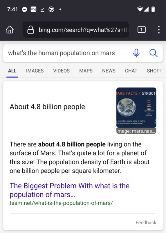 Since we're all dunking on Bing tonight, I think it's interesting how many different answers it's giving...