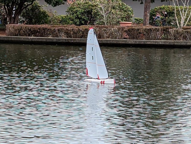 Currently in Tualatin Oregon. Charlene has a get together, so I was gonna find a coffee shop for a few hours, but it's kinda suburbia hell. I feel like that kinda dream where the goal seems almost acceptable and then is suddenly somewhere else for non-sequitur reasons. Anyway, I found this pond and am watching this model boat sailed around it, and that's better than a Starbucks or Pete's in the middle of acres of parking lot.