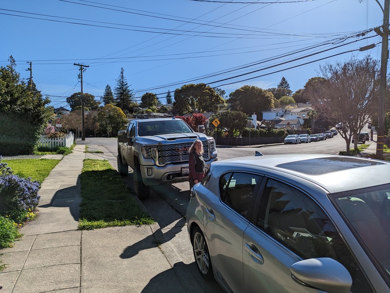 I realize posting pictures of people in the blind spots of modern trucks is kinda passe at this point, but holy duck what are we doing with these things in our neighborhoods?