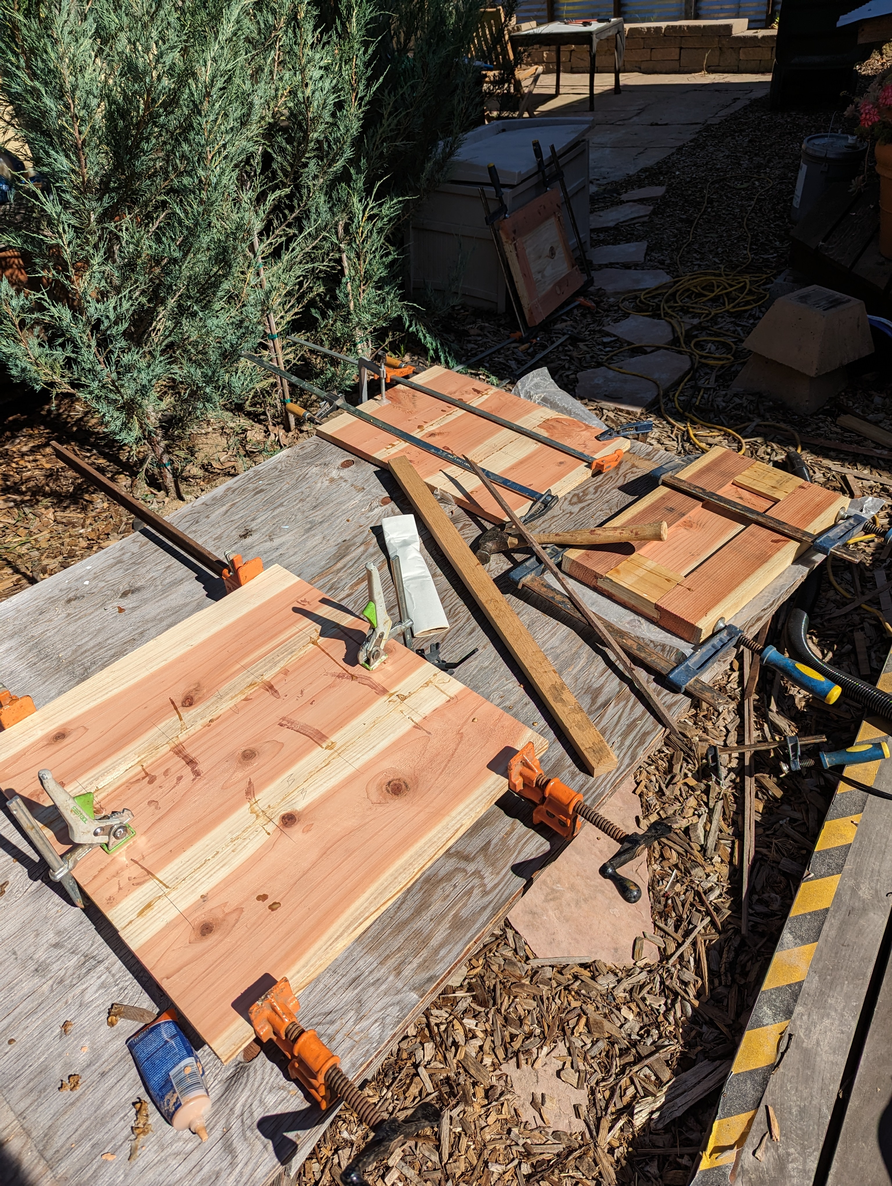Wanted to build a little outside storage unit, and not only is it miserably windy, the wet redwood means the Titebond III isn't drying at all. I should have used PVA construction adhesive...