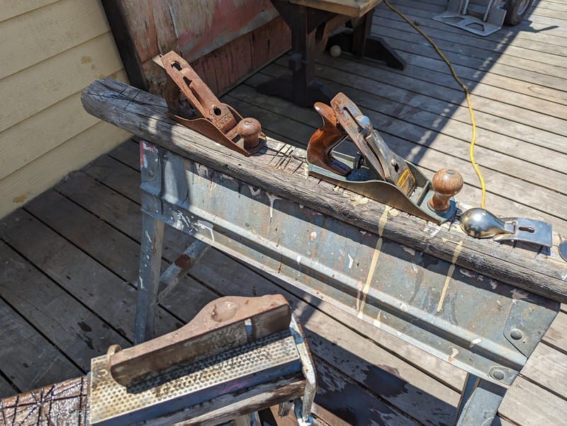 Starting to clean the hand planes gotten from a garage sale on 5th St.