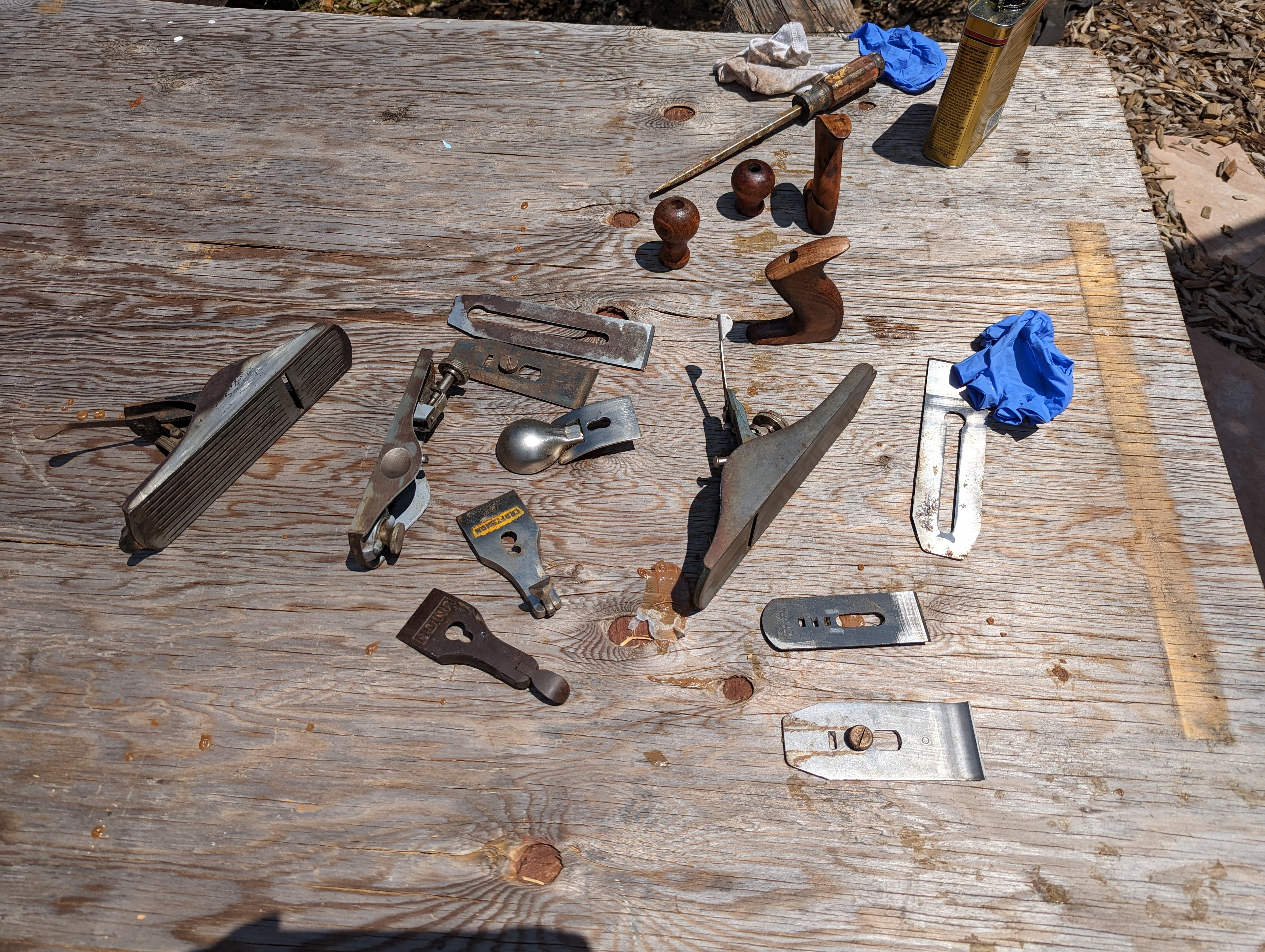Not showroom quality, but cleaned up enough to be usable for the kind of things I do with hand planes, with a coat of wax to keep them from declining as I look to what else I want to do with them.