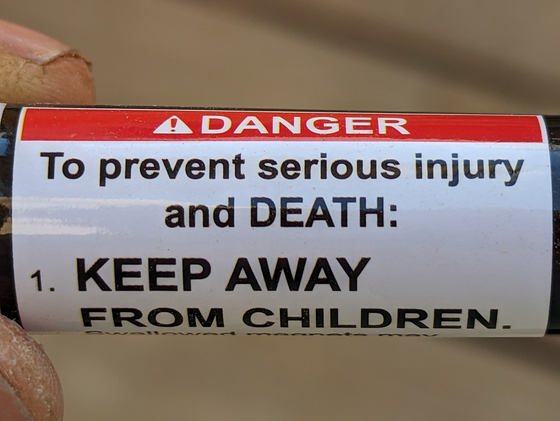 I mean, I don't know why they need to put "Danger: To prevent serious injury and DEATH: KEEP AWAY FROM CHILDREN" on a label, it seems like the kind of general advice we should all have gotten...