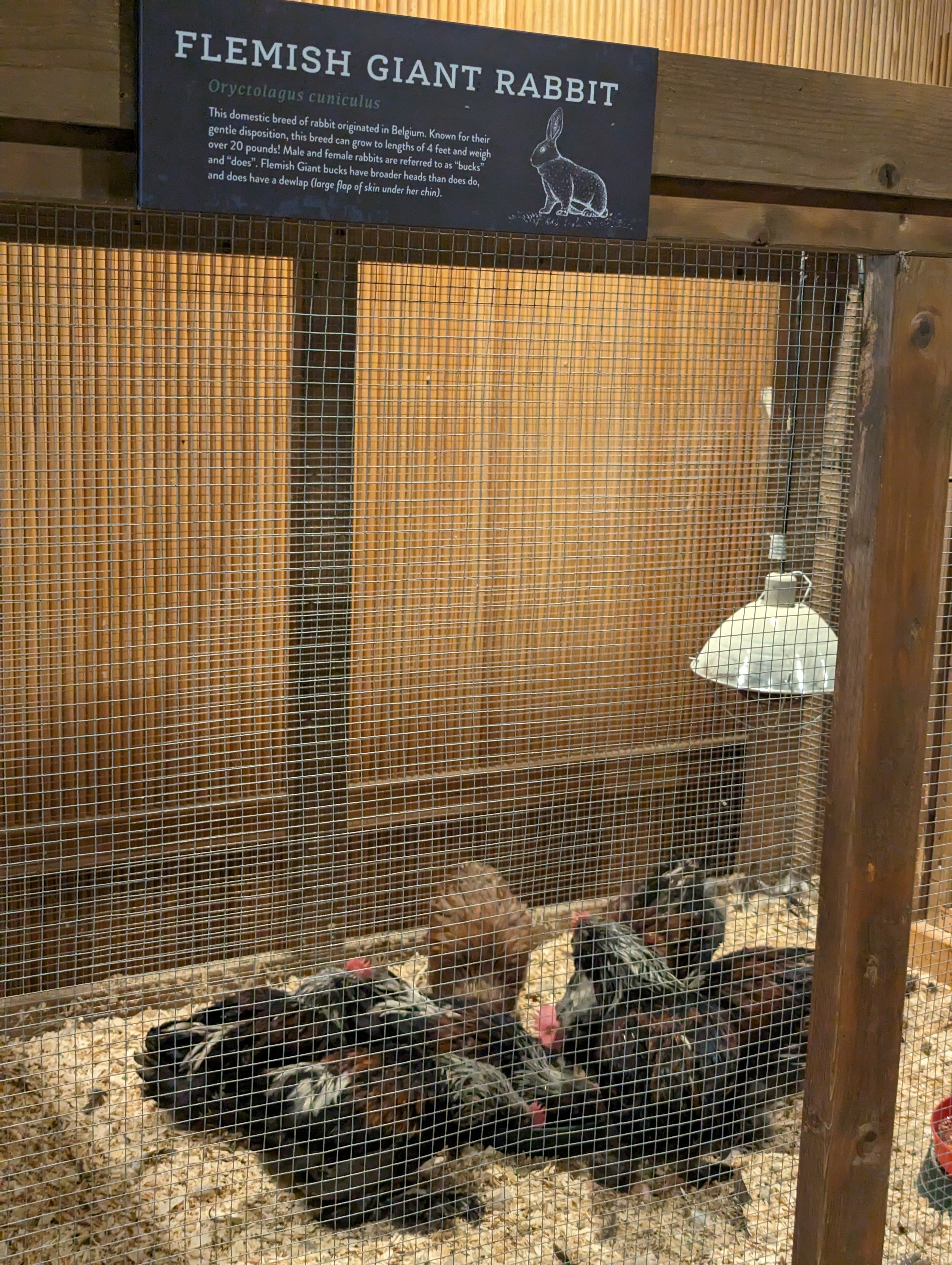 At the Toledo Zoo, there was a two legged beaked alpaca, and these feathered Flemish Giant Rabbits. I'm beginning to think these signs may be misleading...