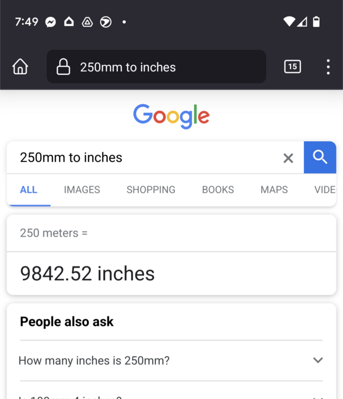 Oh, doh, here's the screenshot from my Google units conversion search that confused millimeters and meters
