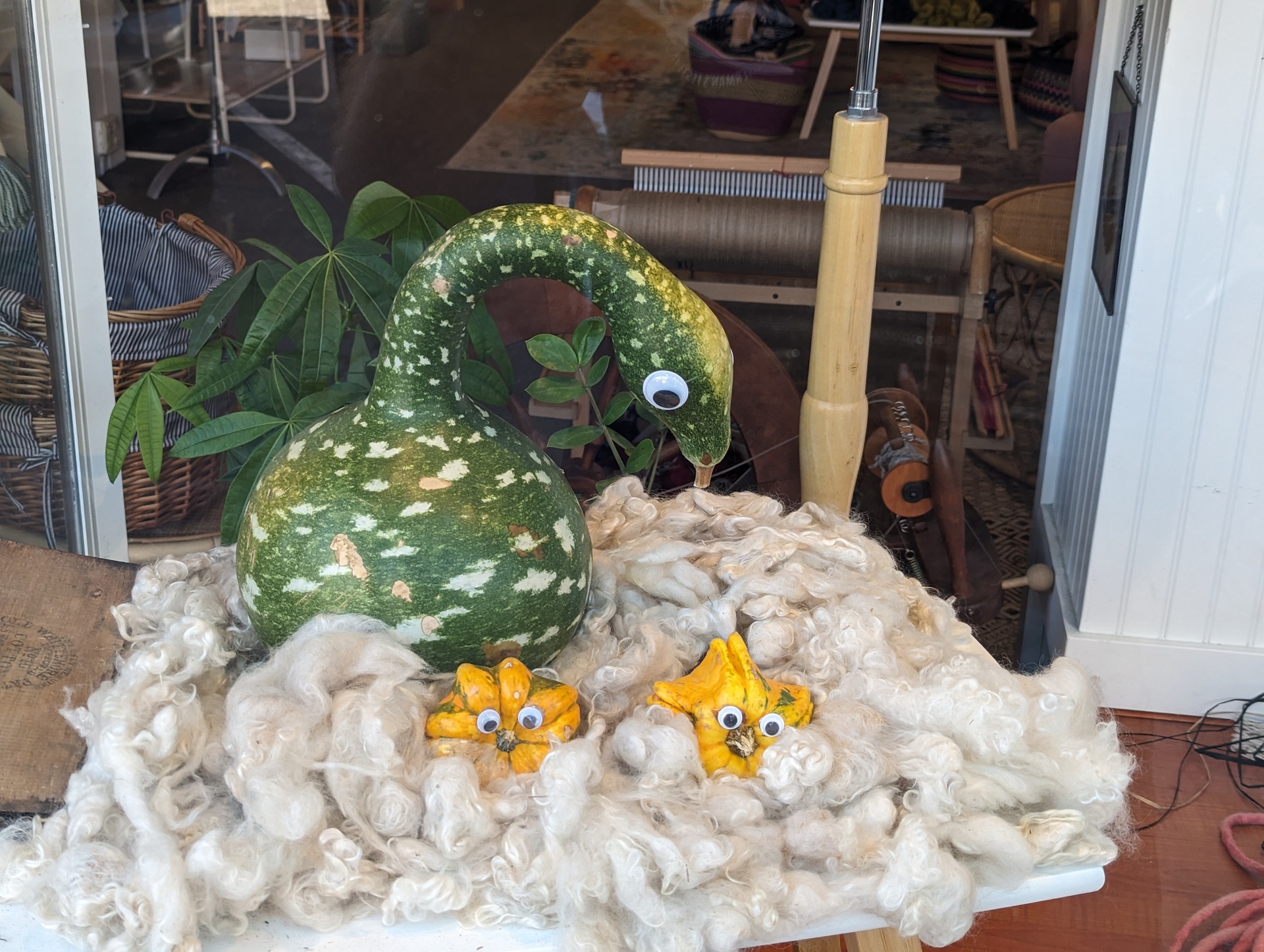 The window display at Fiber Circle Studio is cute. Might even say gorgeous...